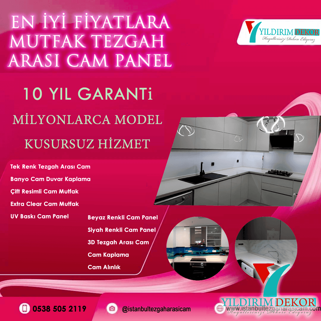Y�ld�r�m Dekor, mutfak tezgah aras� cam panel katalo�umuzda yer alan modeller a�a��da listelenmektedir. Be�endi�iniz tezgah aras� cam panel modelininin �zerine t�klayarak b�y�k resmini g�rebilir, sol altta yer alan model numaras�n� m��teri temsilcimize iletti�inizde sadece �l��leri almak kal�r. Bu nedenle tezgah aras� cam katalog �al��mam�zda yer alan modelleri dikkatle inceliyerek sipari� veriniz.